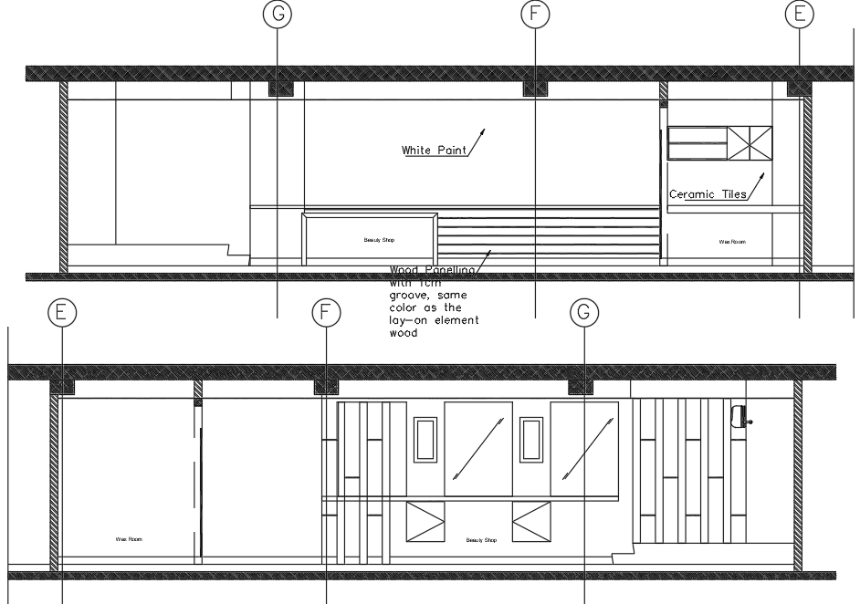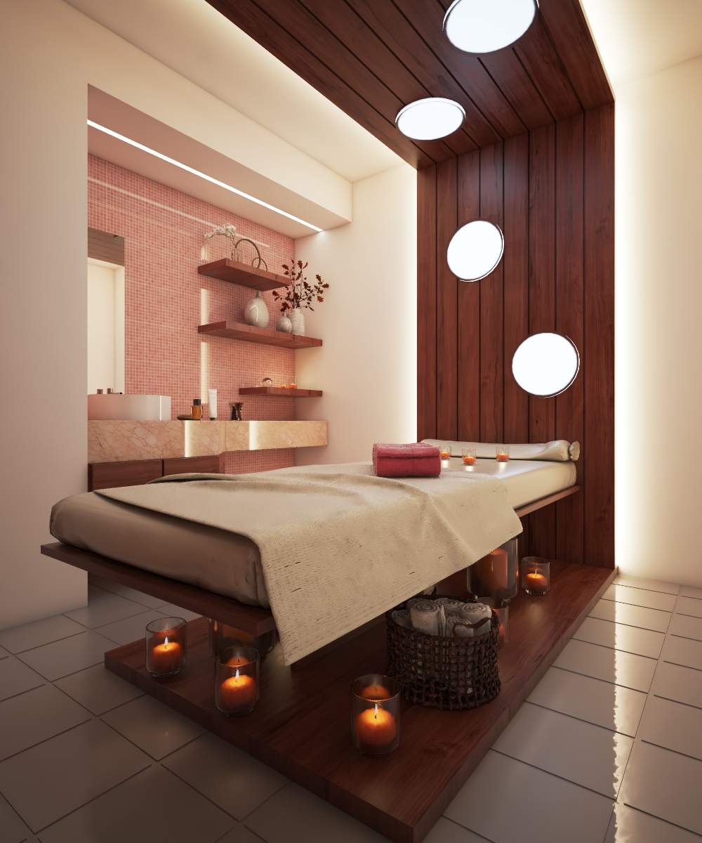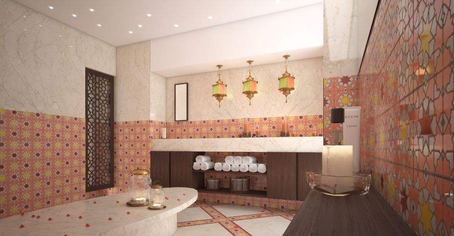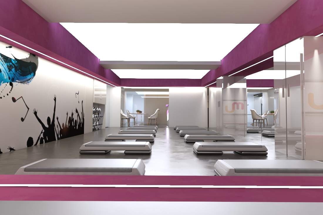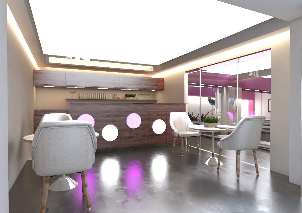 Scope included concept design, execution drawings, and supervision. Functions integrated: coffee shop, spa, Zumba room, and beauty salon. Design focused on modern lines, balanced materials, and seamless circulation.