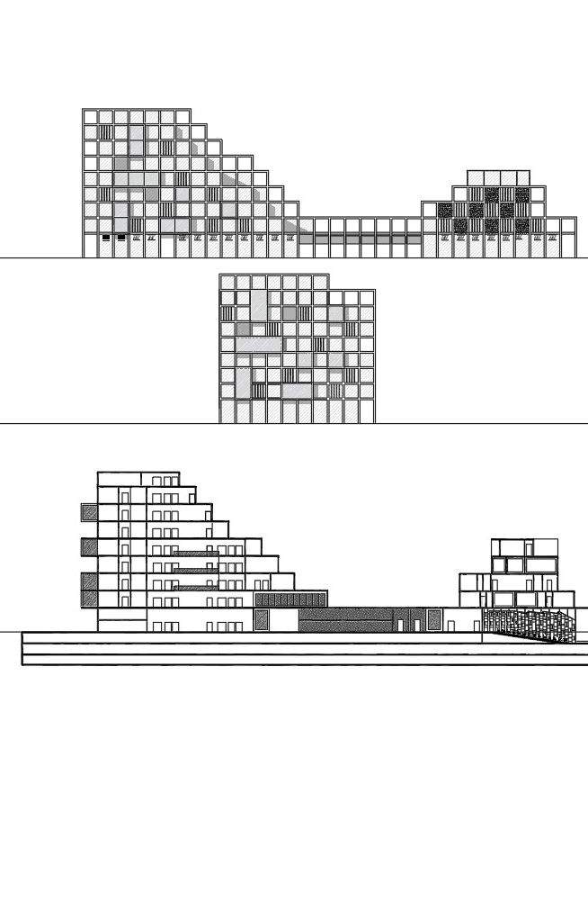 contemporary mixed-use development combining office and residential functions within a unified architectural concept. The design is driven by a modular grid framework, creating a layered composition of volumes that balance transparency and privacy.