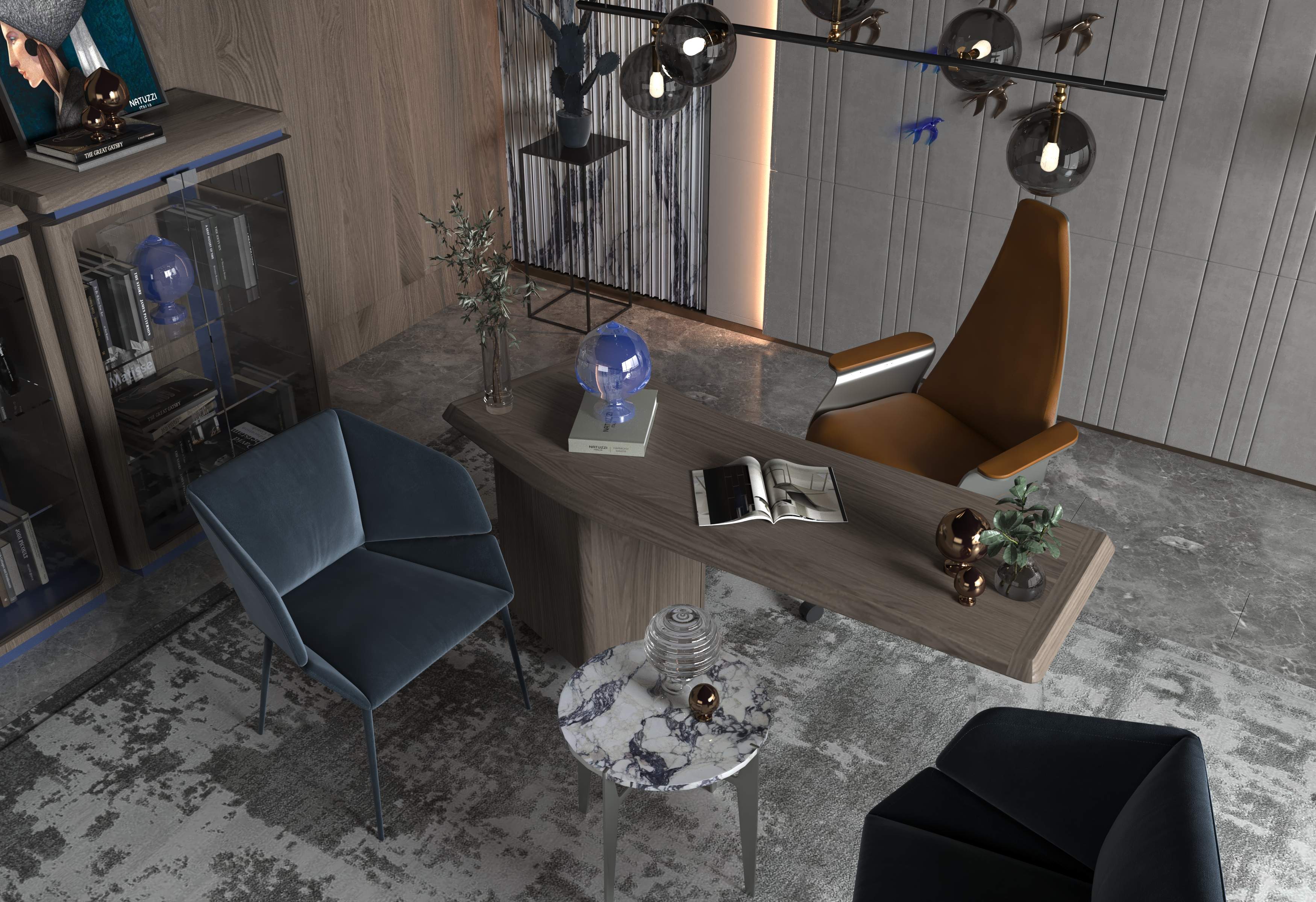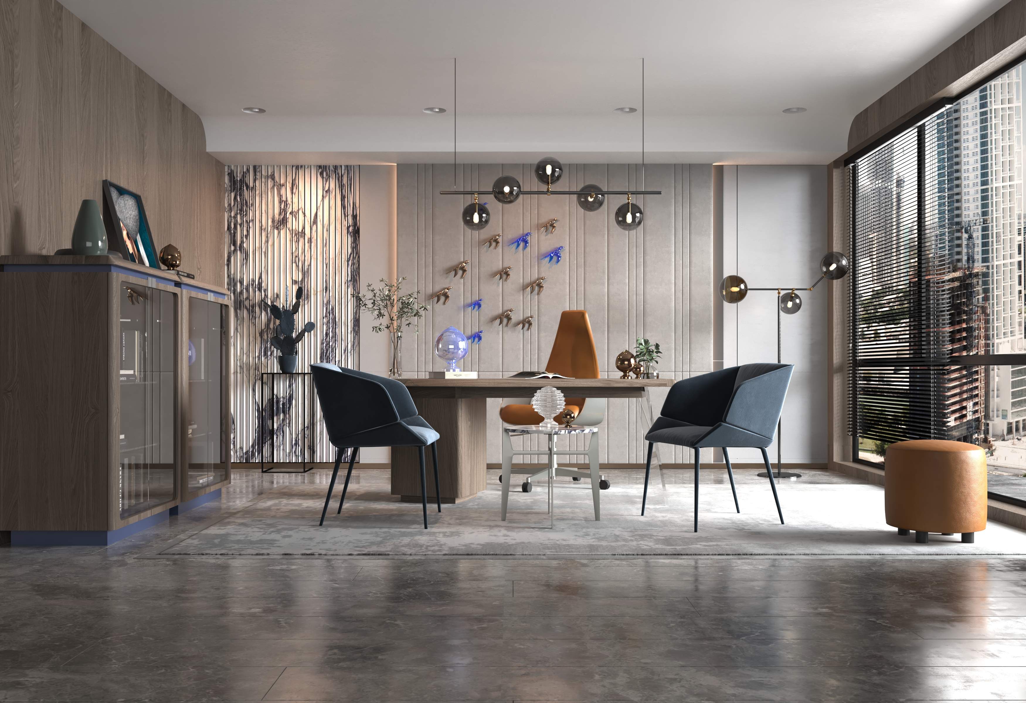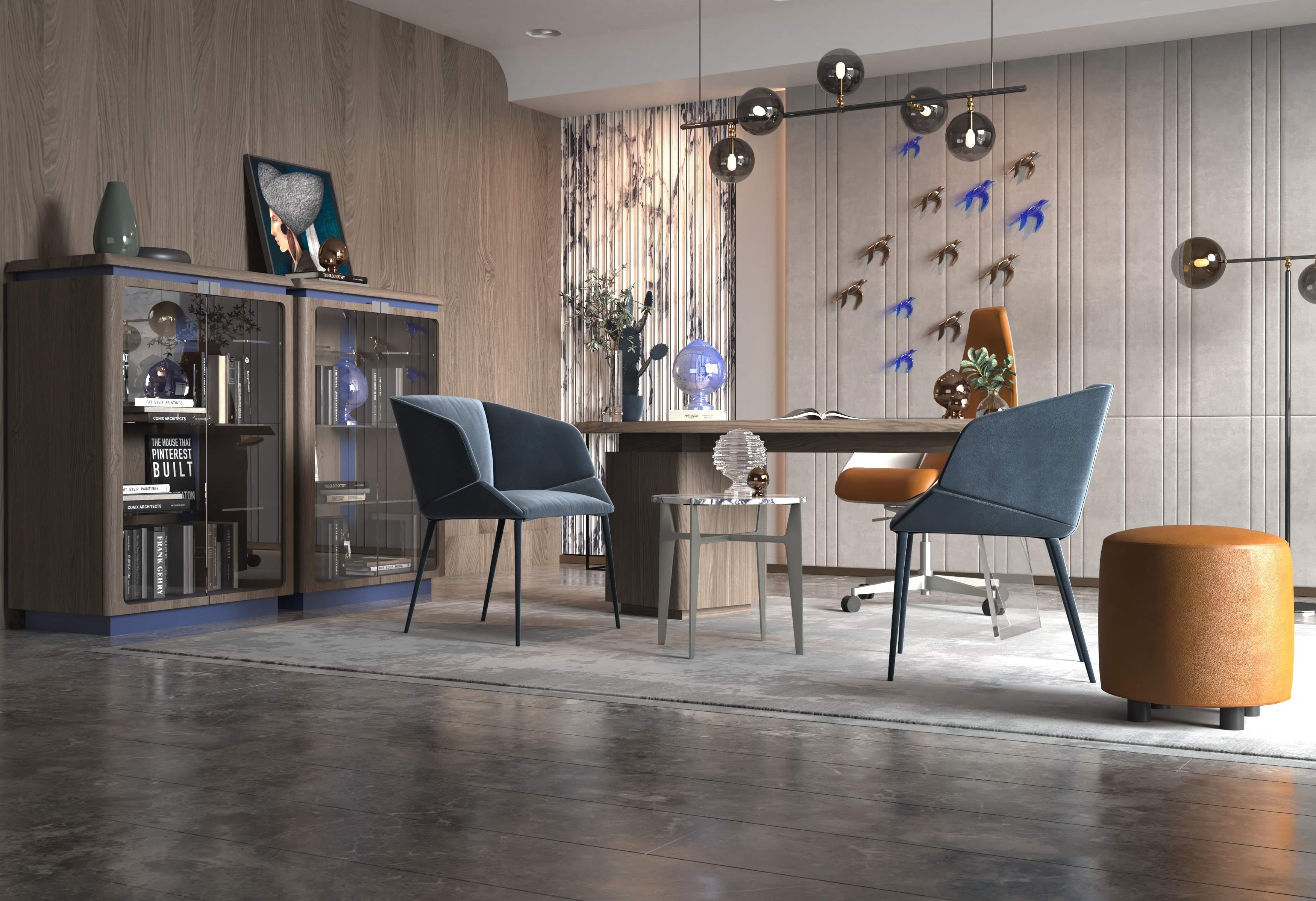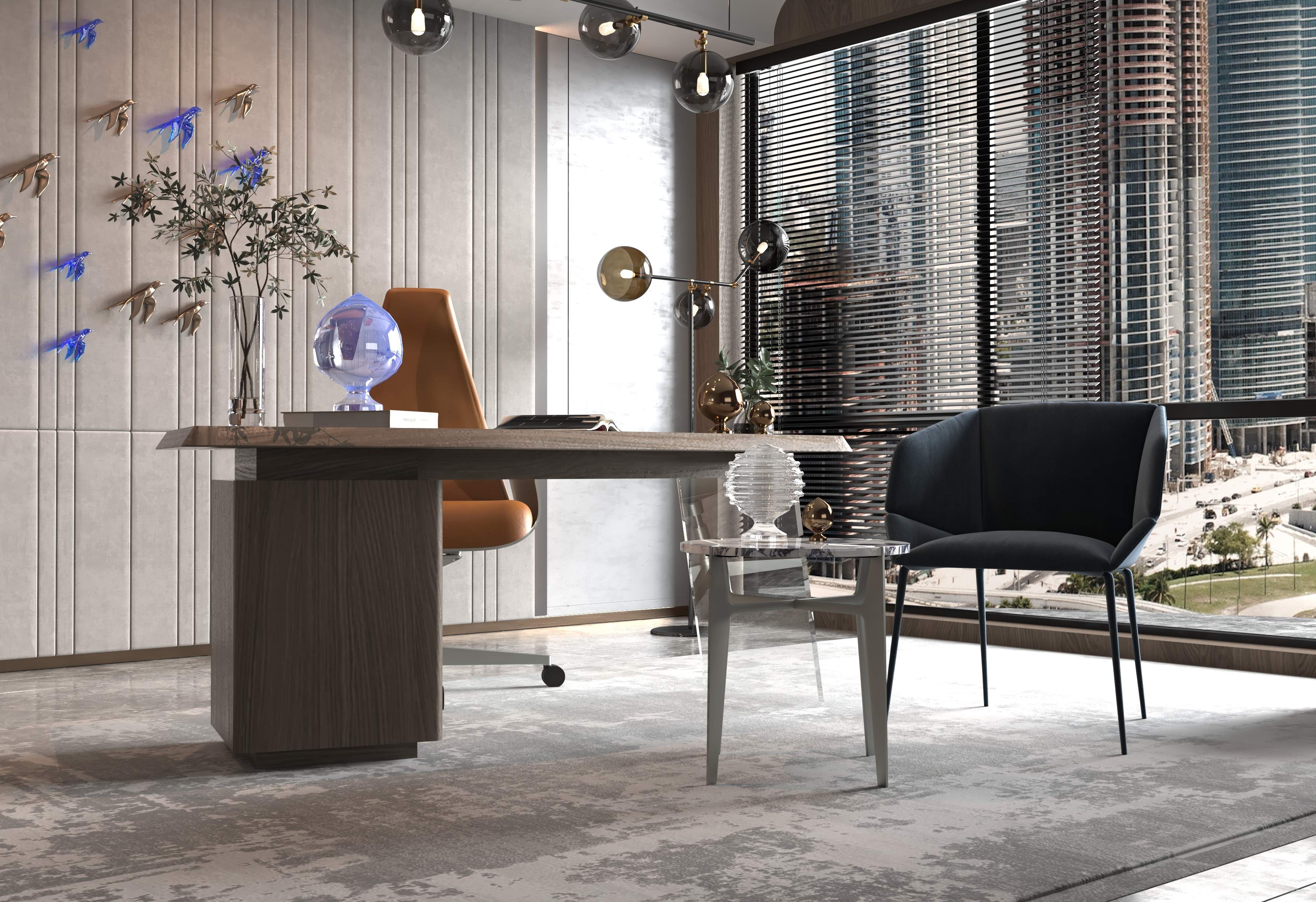 The final design delivers a contemporary office space that inspires productivity while maintaining a sophisticated aesthetic. The thoughtful combination of art, design, and premium furniture creates a refined and creative work atmosphere tailored for modern professionals.