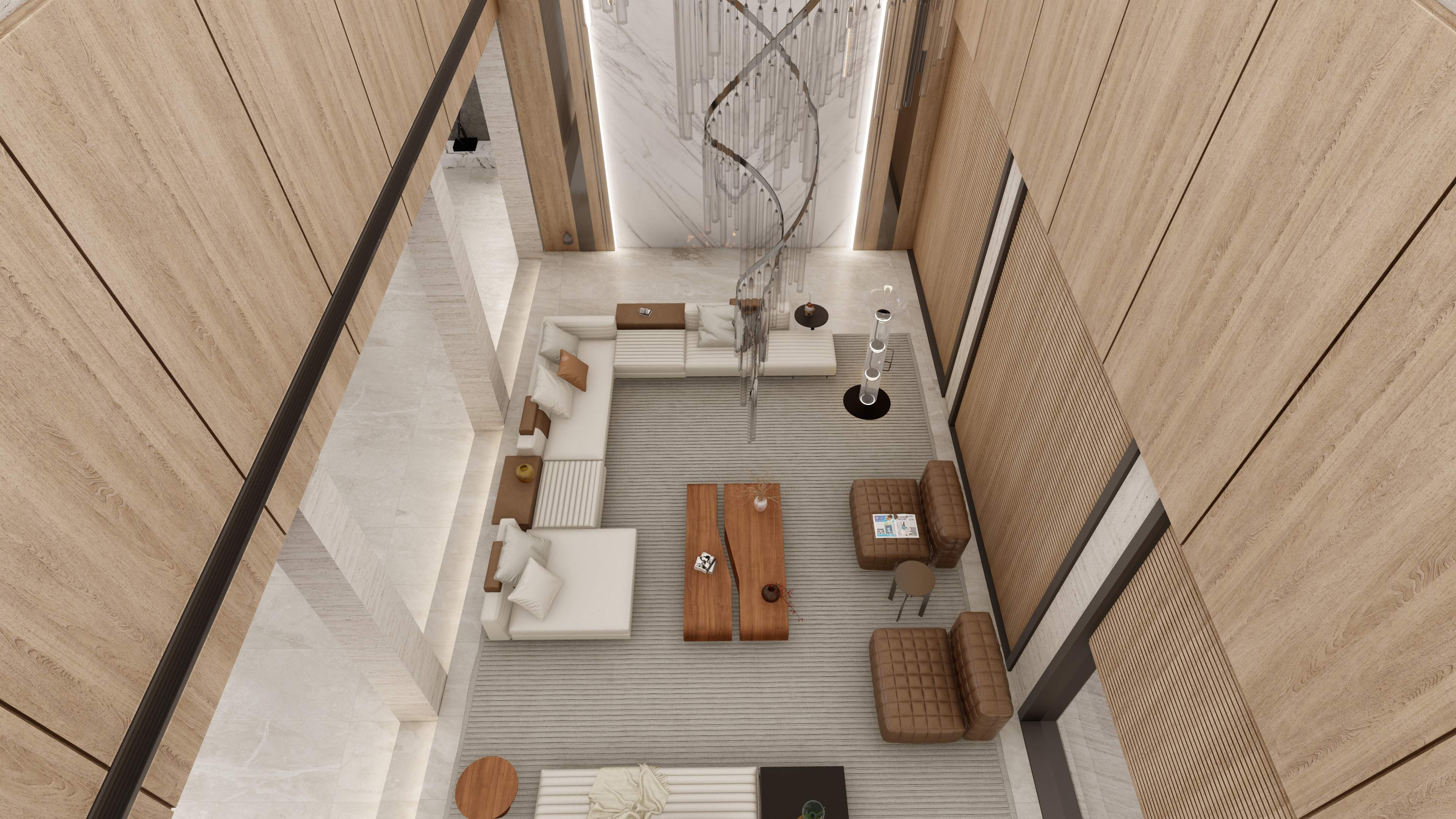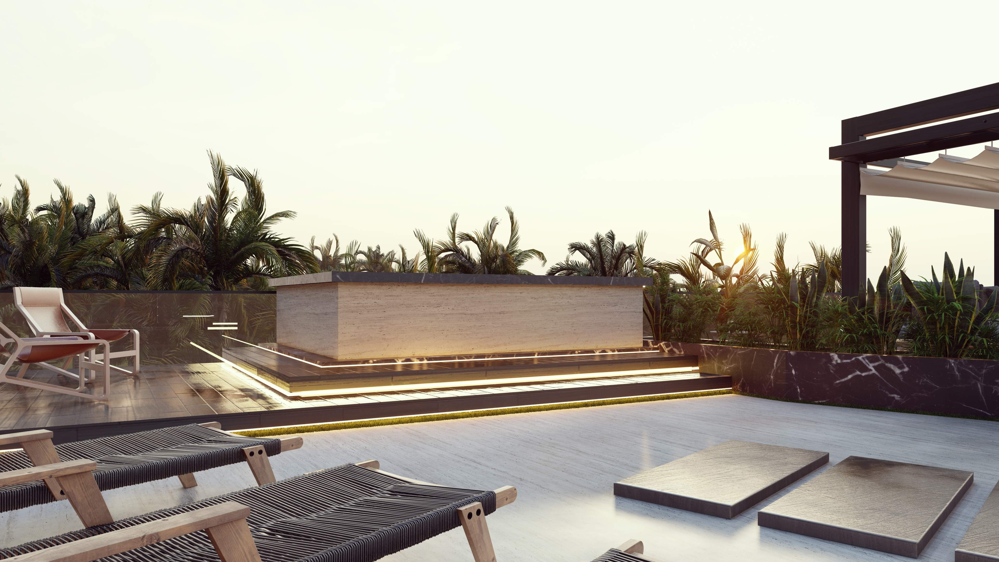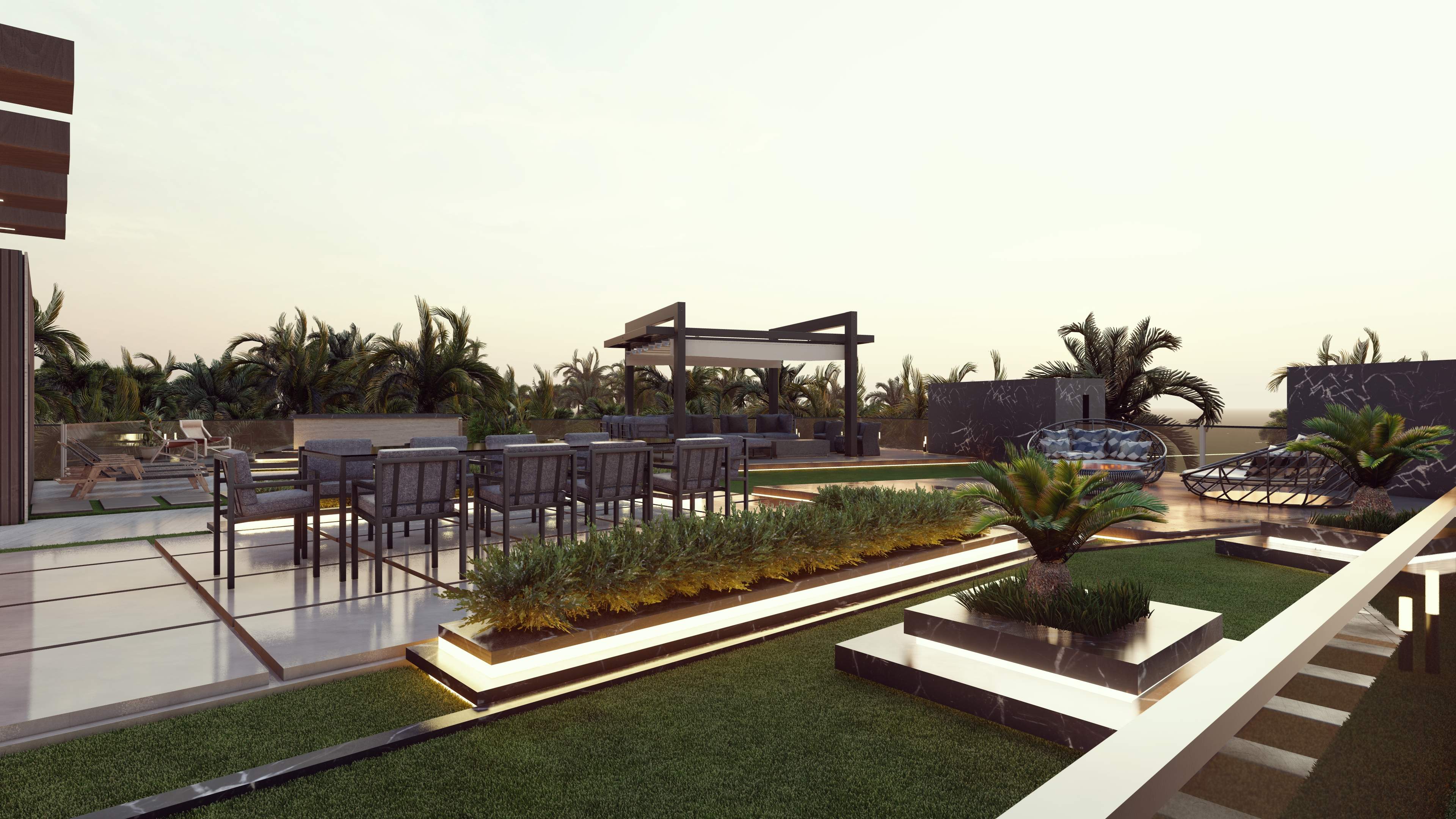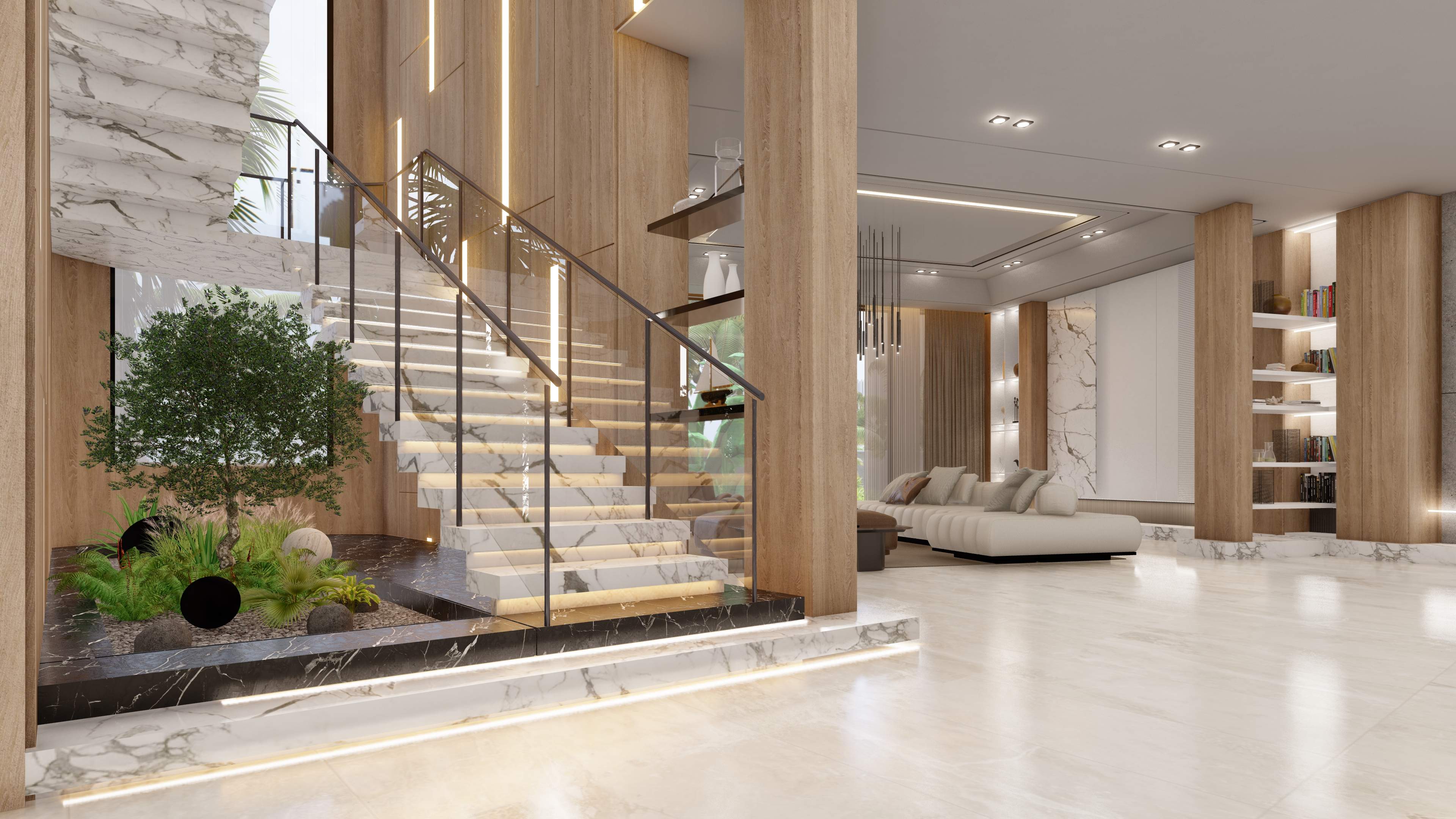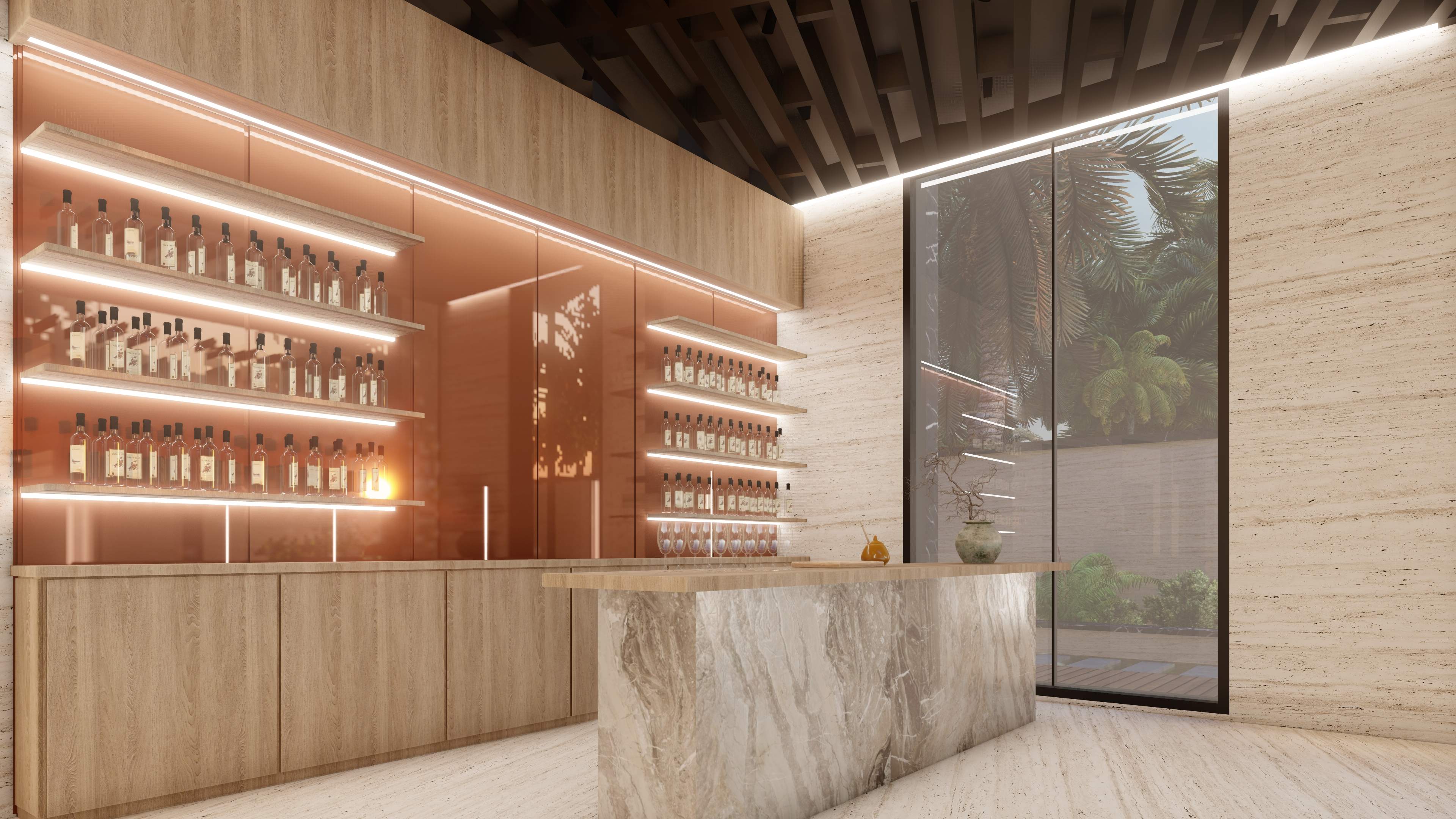 Led the full renovation scope—interior, exterior, and landscaping. The design blends modern architecture with grey tones, Arablar wood, and premium materials like Travertino and Nero Marquina marble, achieving a refined balance of elegance and timeless luxury. A rooftop terrace frames panoramic views of the Burj Al Arab, while the interiors embody calm, sophisticated living.