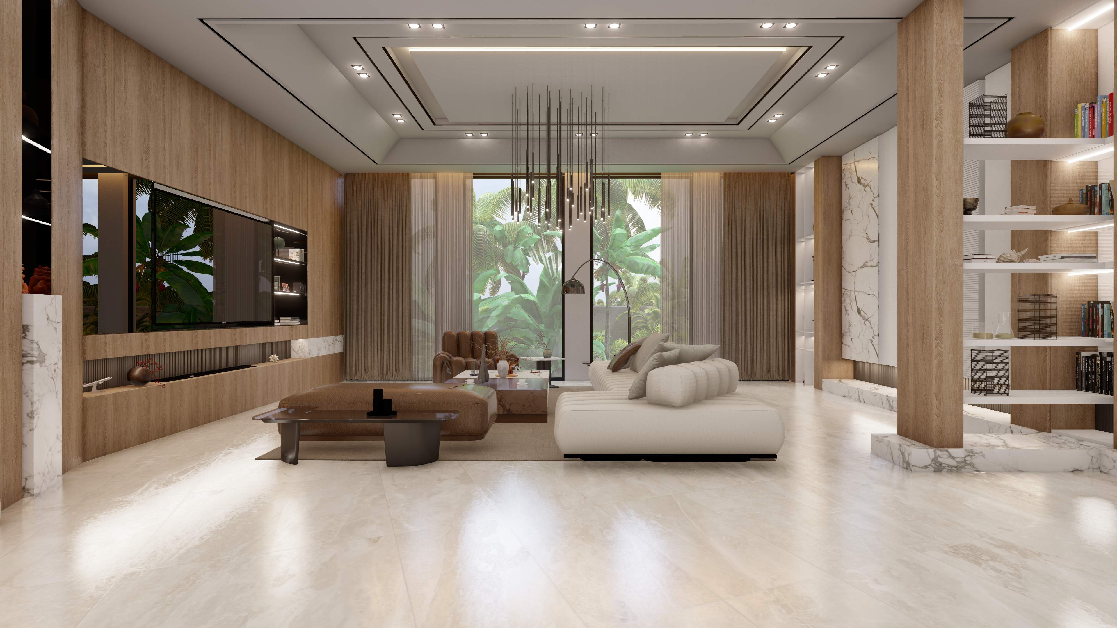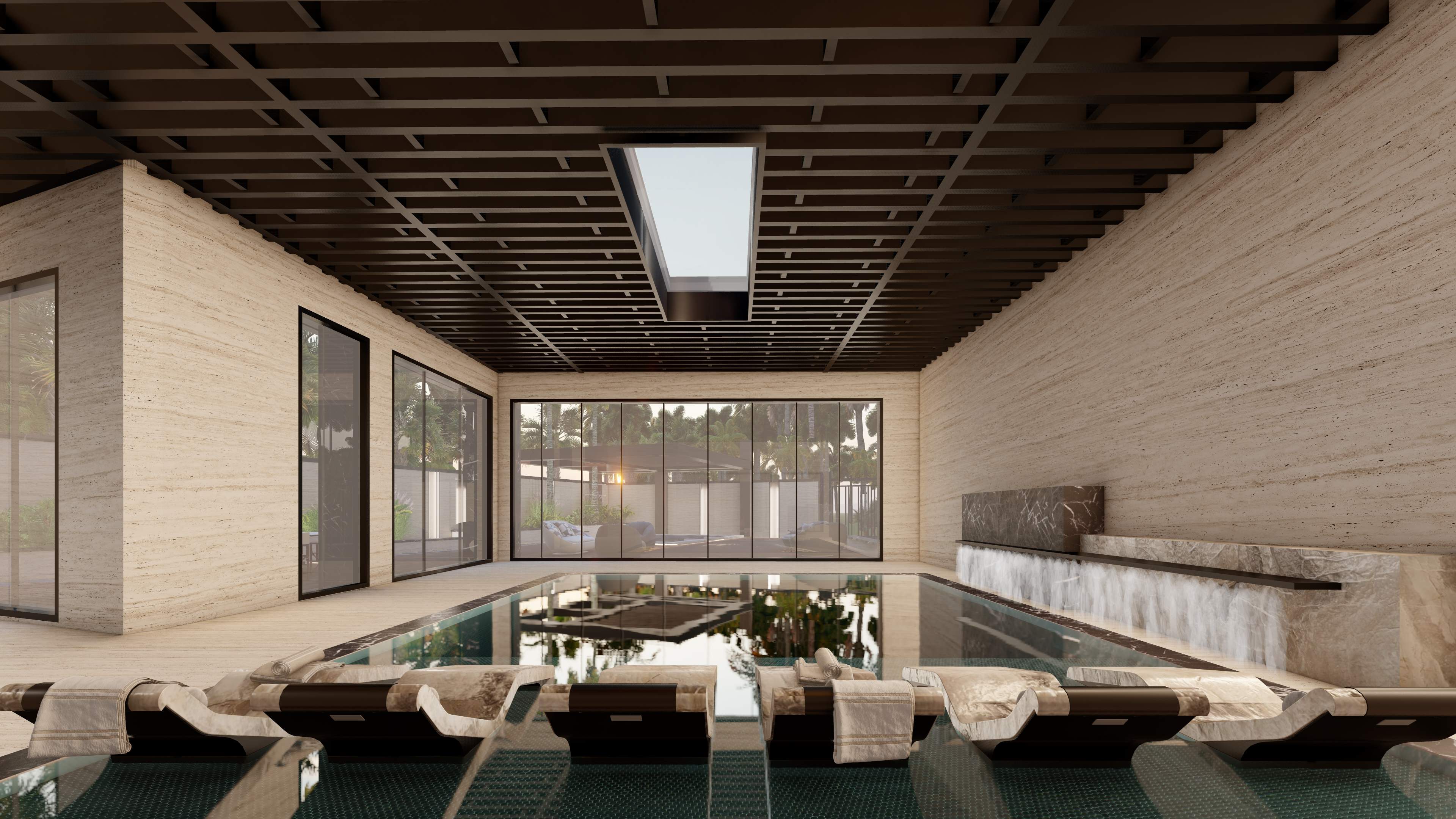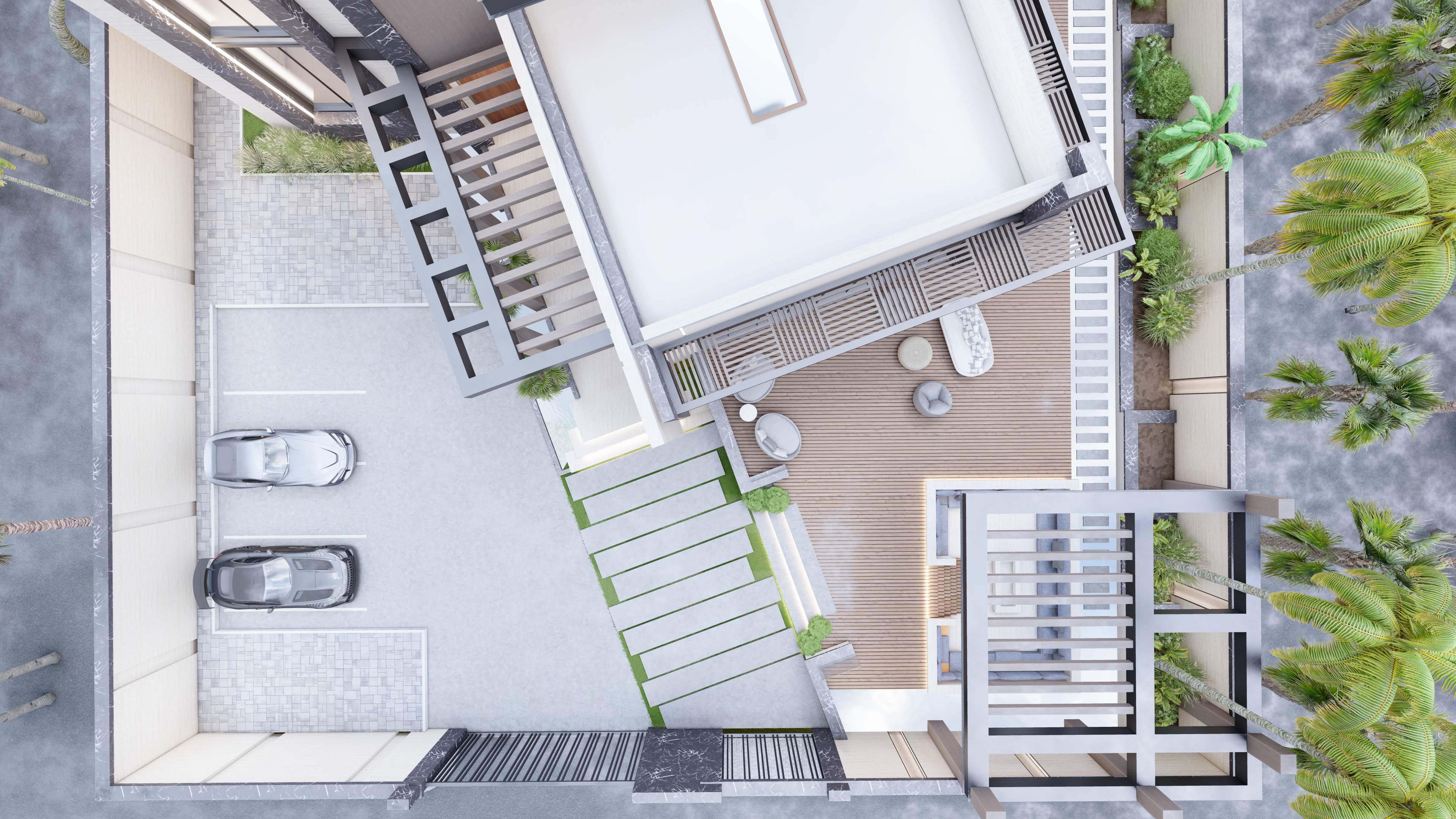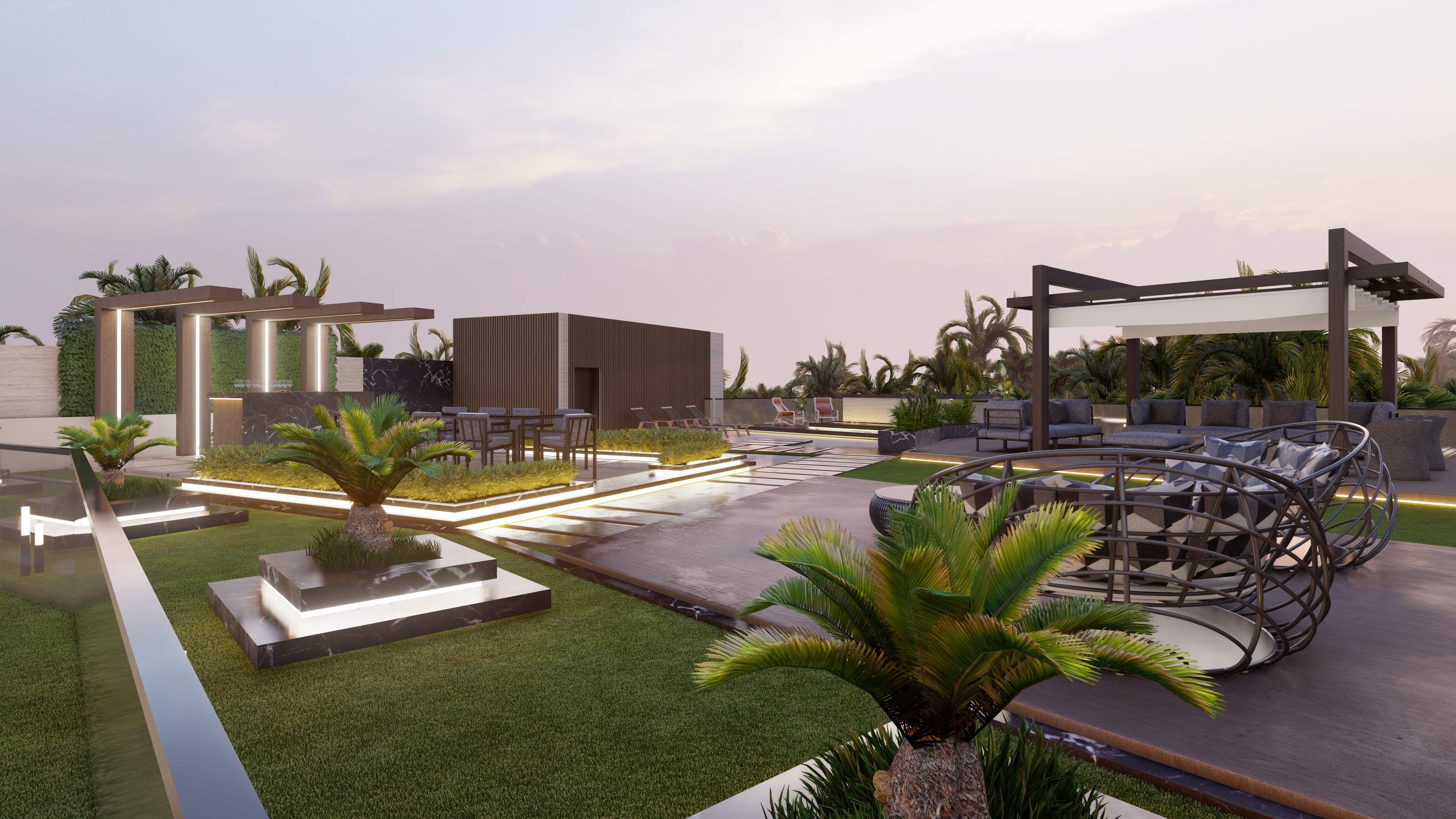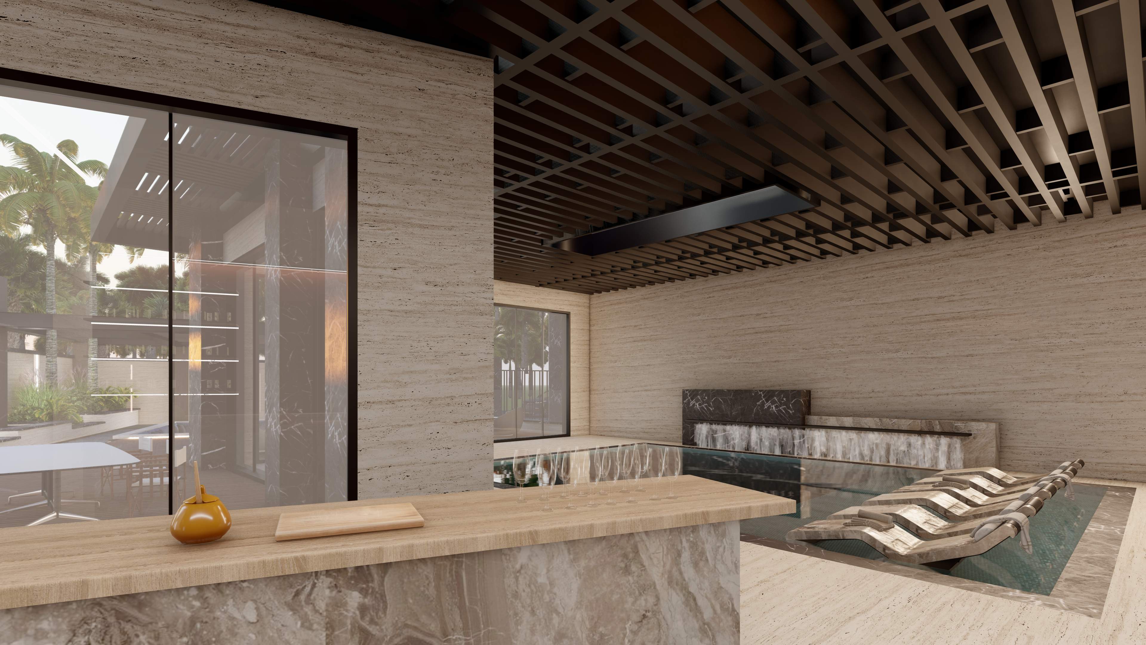 Led the full renovation scope—interior, exterior, and landscaping. The design blends modern architecture with grey tones, Arablar wood, and premium materials like Travertino and Nero Marquina marble, achieving a refined balance of elegance and timeless luxury. A rooftop terrace frames panoramic views of the Burj Al Arab, while the interiors embody calm, sophisticated living.